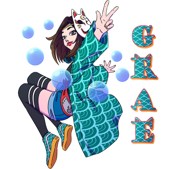 When Grae was just 12 years old, on a normal day she was walking near her house, but then she saw a meteor crash into her garage. As she got closer, the meteorite opened up, showing her 7 spheres. Over time, Grae discovered that those spheres could show her the future, so she used them to earn money by reading people's future fortunes, and she soon became very famous. When her fame spread, she made a mask with her own hands in order to hide her identity and keep her personal life quiet.