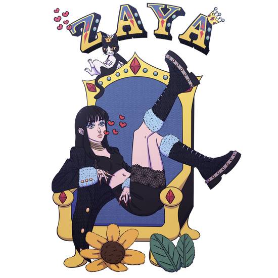 Zaya always lived surrounded by luxury, but that did not stop her from being an honest and kind person, and sometimes daring. She has always loved animals and plants, so when Zaya ascended the throne, she appointed her cat Soleil as her personal advisor, and together they created the largest nature reserve on the planet.